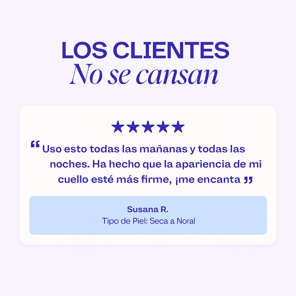 Firmeza visible: ayuda a tonificar el aspecto del cuello y el escote, reduciendo el look “piel crepé”.