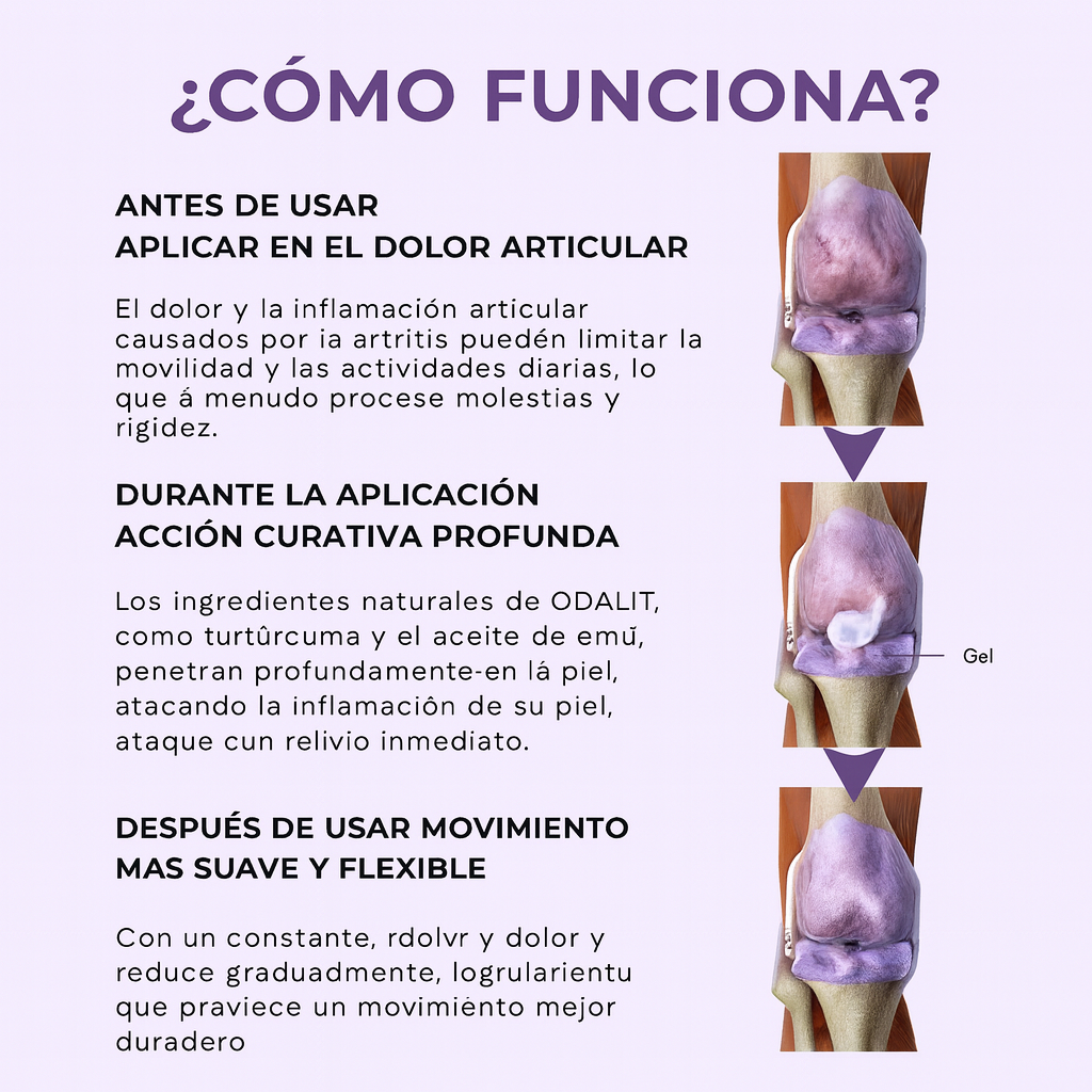 Decile chau al dolor y hola al bienestar en 3 minutos. Con ODALIT Gel de Masaje Calmante en formato 2x1, disfrutás de una sensación de alivio rápida mientras recuperás movilidad y comodidad para tus actividades.